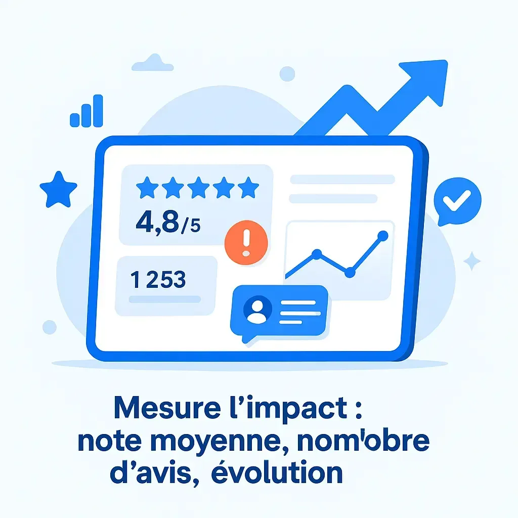 Suivez l’évolution de votre réputation : note moyenne, volume d’avis et tendances en temps réel.